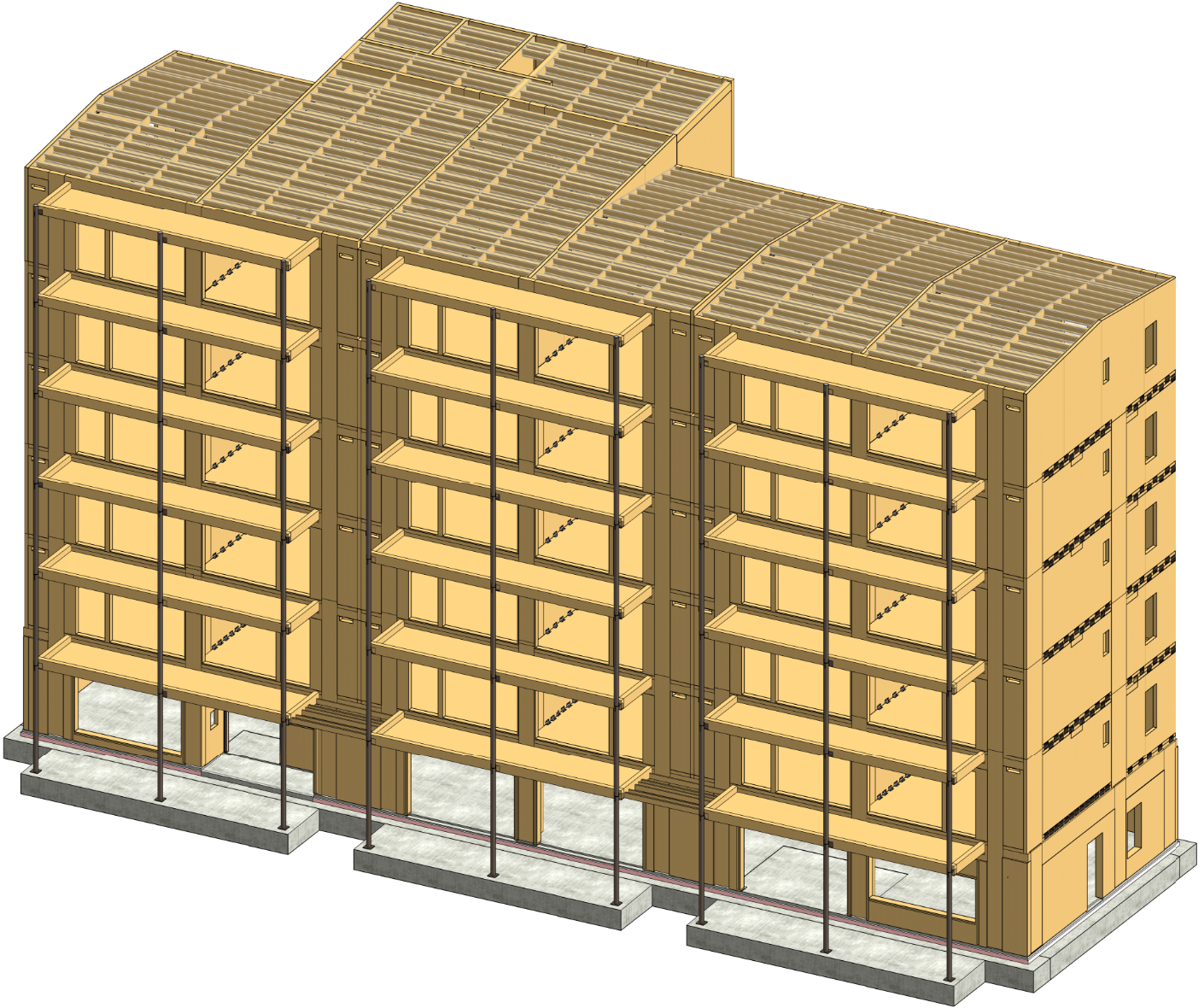 Overall site consists of five medium-rise apartment blocks between 6 and 8 stories constructed primarily using precast concrete and structural steel framing. This project represents one of the largest (single site) developments by Kainga Ora. Matt completed design and construction monitoring of the 6 storey Building B was designed as a complete mass timber structure for comparative purposes and to strive for low embodied carbon initiatives.